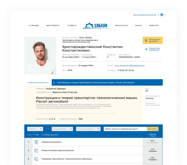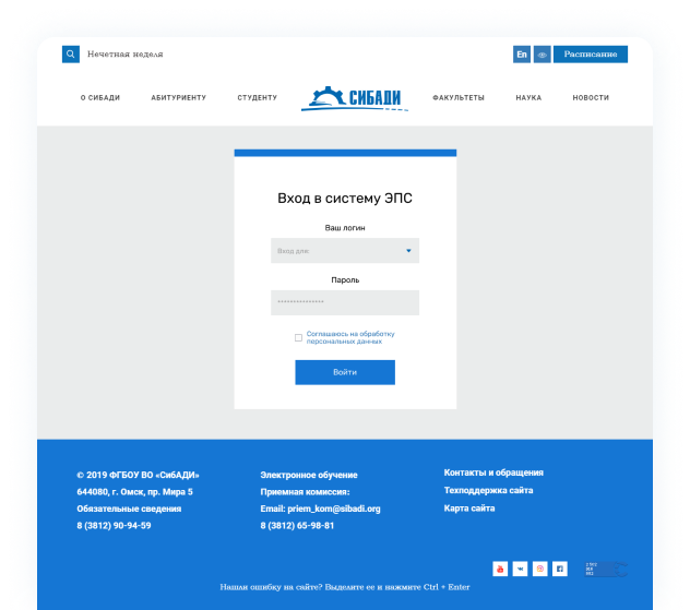 Мы разработали для СибАДИ дизайн электронной платформы, представляющий из себя внутренний портал, доступ к которому имеют все участники процесса обучения: студенты, преподаватели, сотрудники деканата, ректорат и т.д.